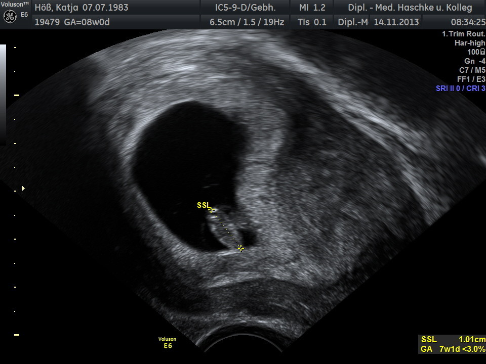 Das erste Ultraschallbild mit Herzschlag, wir waren mehr als glücklich und vor Freude flossen auch ein paar Tränen.